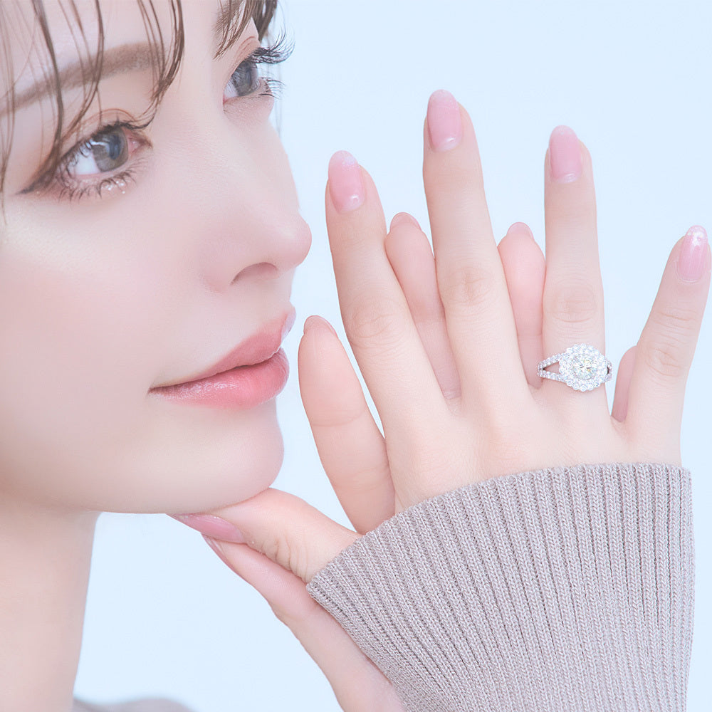 1カラットの天然ダイヤモンドと、それを取り巻く無数の天然ダイヤモンド。