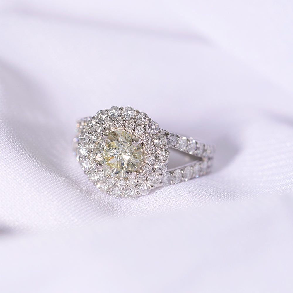イエローダイヤモンド(ベリーライトイエロー)約1.0ct,メレダイヤモンド約1.0ct,プラチナム