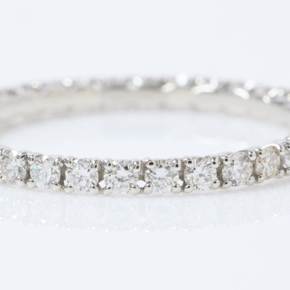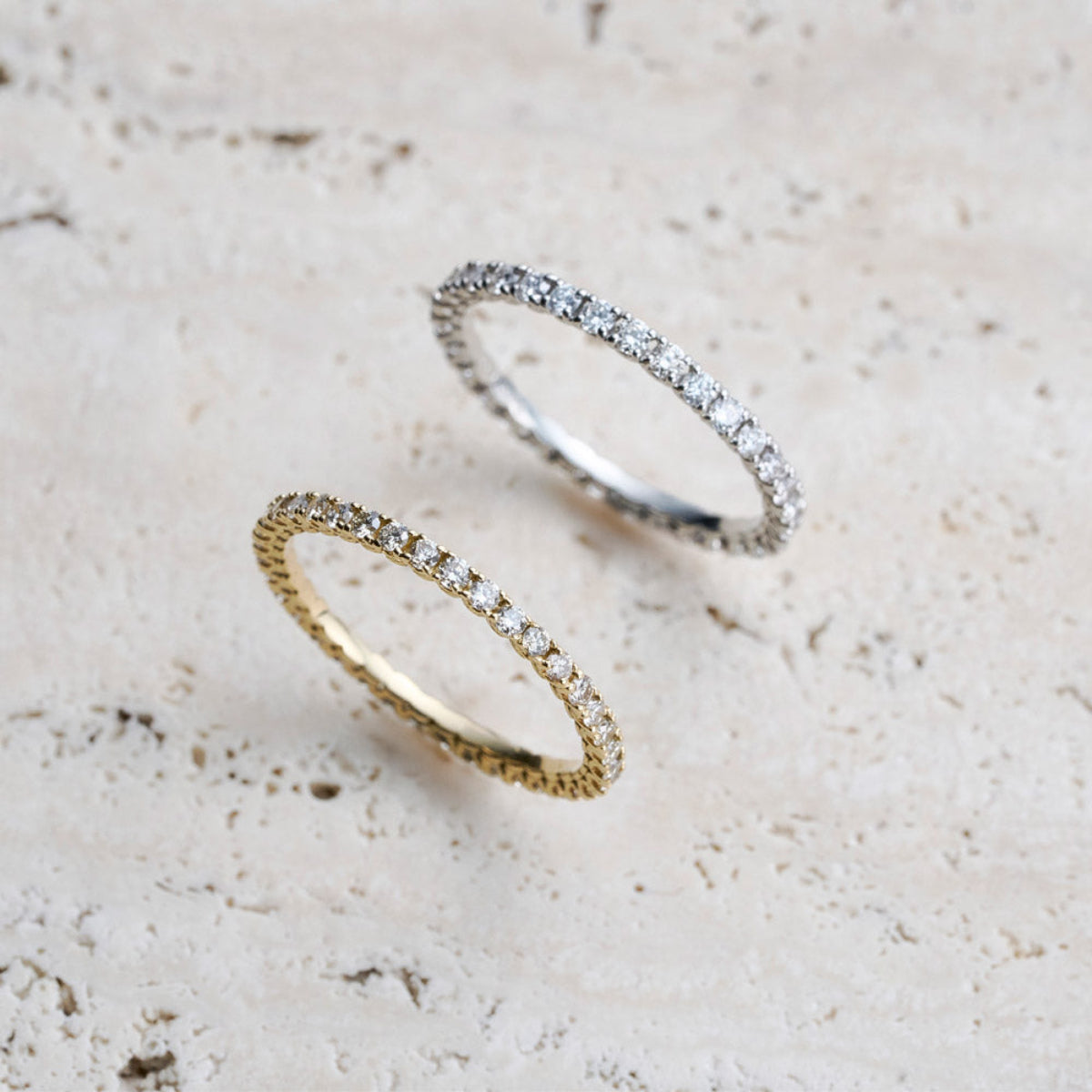 無数のダイヤモンドが輝くフルタニティリング。計0.5ct以上のボリューム感をもつため、一本で楽しむことも、お手持ちのリングとコーディネートすることもできます。